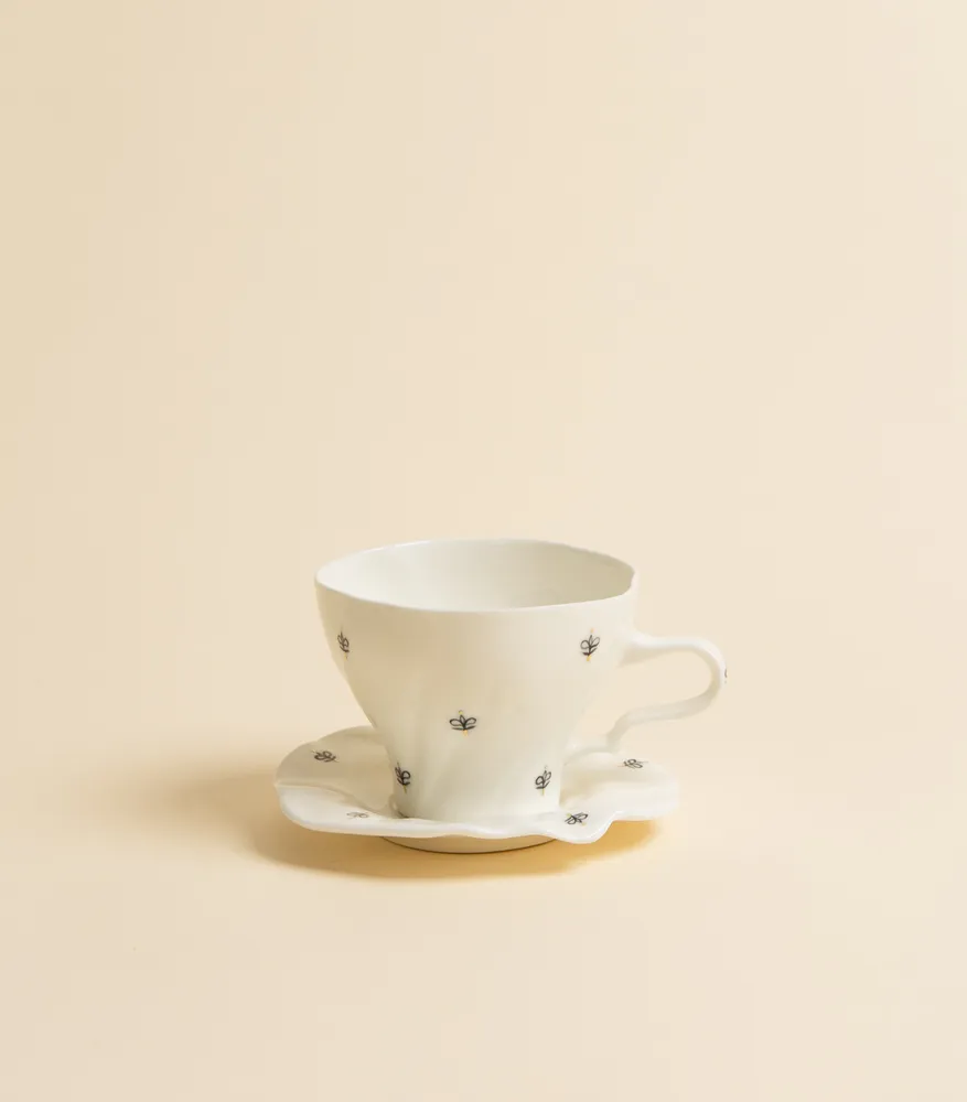 Чайная пара – Цветочки, с чёрной росписью | Reveri