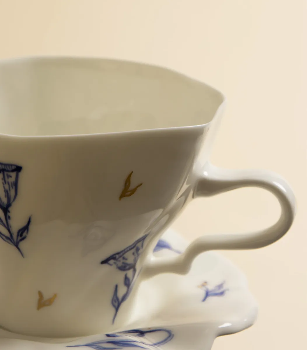 Чайная пара – Тюльпаны, с синей росписью | Reveri