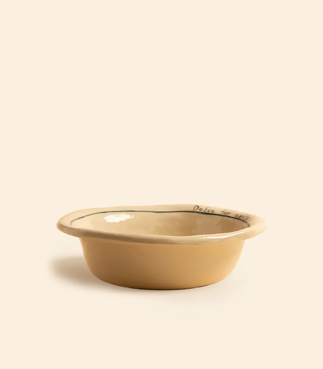 Основа дизайна бренда – эклектика и богемный стиль. Главным медиумом коллекций стала керамика. Посуда и декор сделаны в технике «сграффито» – процарапывание узора и росписью с отсылками на традиции различных культур – от русской «Гжели» до португальского «Азулежу».